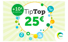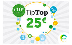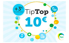 2. Bonus: Bei jedem Kauf eines TipTop 10 € / 15 € / 25 € / 100 €-Set erhalten Sie je nach gewähltem Set ein Bonusguthaben von 3 bis 25 €. Dieser Bonus wird automatisch dem Guthabenstand des Kunden gutgeschrieben. Nach Ablauf der Gültigkeitsdauer des Guthabens ohne erneute Aufladung verfallen Guthaben und Bonus. Diese Boni können für den Kauf der 2-GB- oder 8-GB-Data-Optionen, für den Versand von SMS oder für Anrufe verwendet werden. Diese Boni werden bei jedem erneuten Aufladen von TipTop erneuert. Die Boni können nicht für den Kauf von mobilen Geräten oder Zubehör verwendet werden.