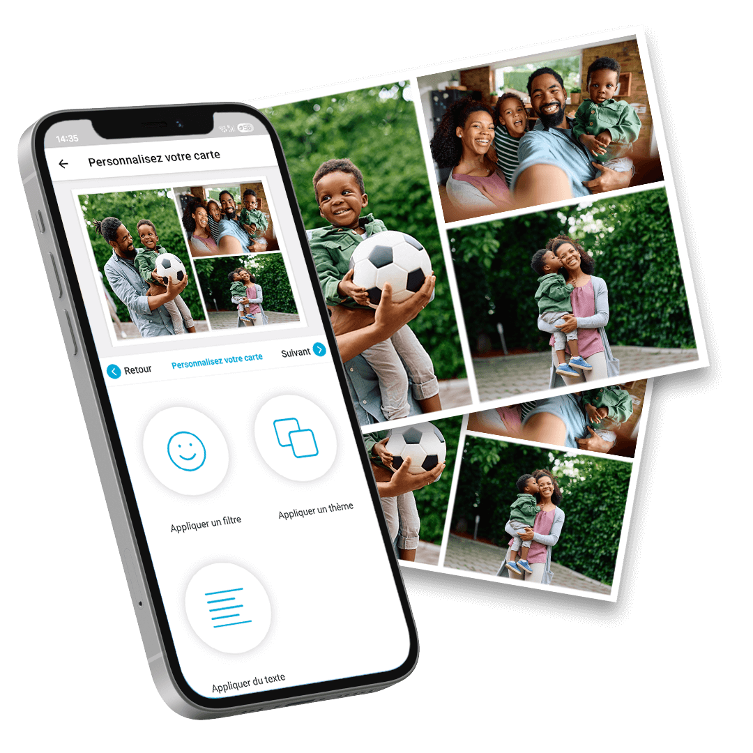 Votre photo est imprimée sur du papier glacé format carte postale et postée avec un vrai timbre.