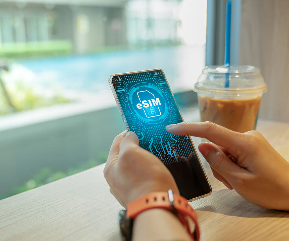 Une eSIM est une carte SIM virtuelle directement intégrée dans les smartphones ou autres objets connectés dès leur fabrication. Plus besoin donc d'insérer ou de retirer votre carte SIM de votre appareil !