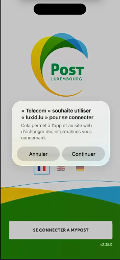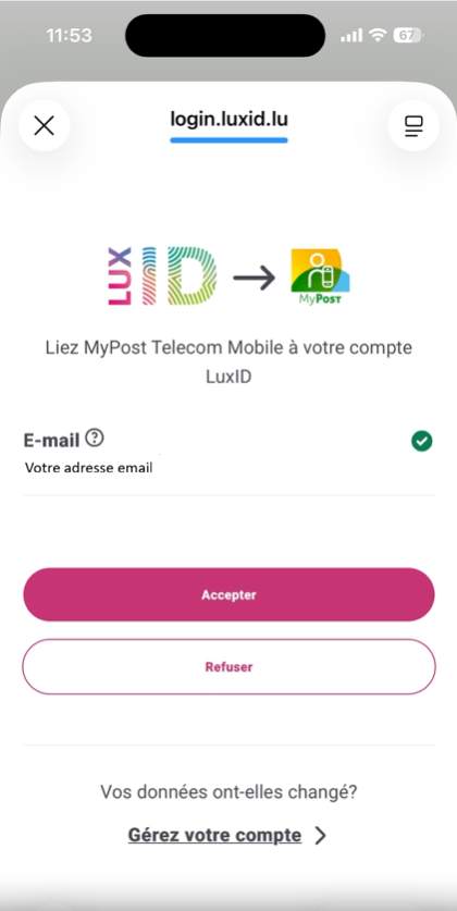 Vous allez être invité à lier votre compte myPost Telecom à votre compte LuxID. Cliquez sur « Accepter ».