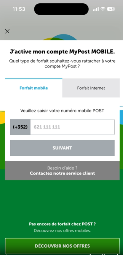 Vous êtes maintenant dans l’application mobile MyPost. Il ne vous reste plus qu’à saisir votre numéro de mobile pour activer votre compte.
