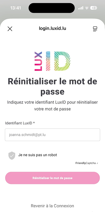 Saisissez votre identifiant LuxID, puis cliquez sur « Réinitialiser le mot de passe »..