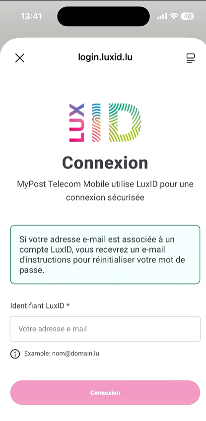 Une fois terminé, revenez sur l’application mobile MyPost et connectez-vous en suivant la procédure FAQ : « J’ai déjà un compte LuxID, comment me connecter à l’app MyPost Telecom ? »
